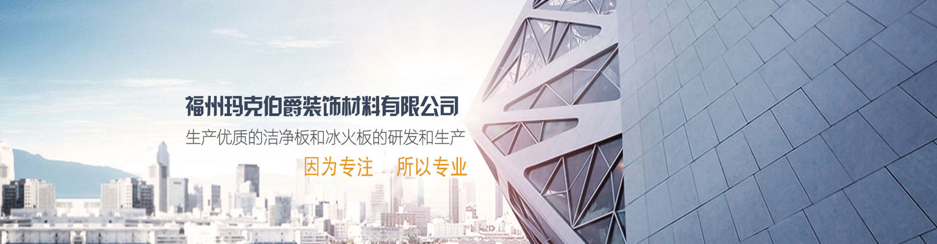 福州瑪克伯爵裝飾材料有限公司成立于2002年,是一家專業研發A級防火材料和生產內外墻可替代裝飾材料的公司,主要價格生產各類工程裝飾用品:冰火板、醫用抗菌板、保溫一體板、隧道板等,產品具有防火防水、綠色環保、無毒、無煙無排放、抗菌、A級防火等多項技術優勢。